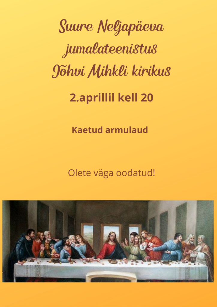 Suure Neljapäeva jumalateenistus armulauaga 2.04 kell 20
